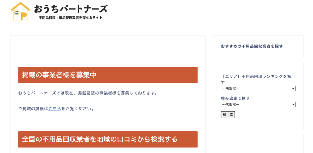 不用品回収業者選びで失敗したくない方におすすめなのが、地域の口コミから優良業者を探せるポータルサイト「おうちパートナーズ」です。